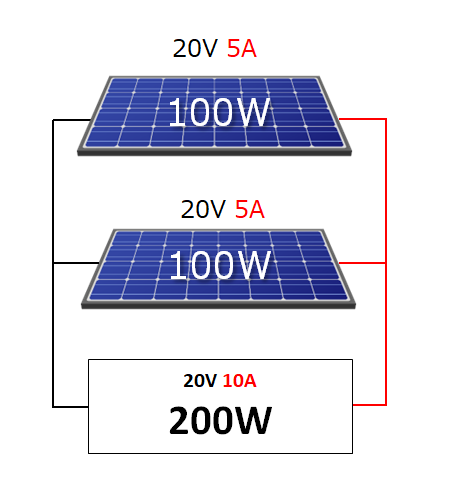 高い電流性能があるポータブル電源には並列接続でパネルを増加させる。