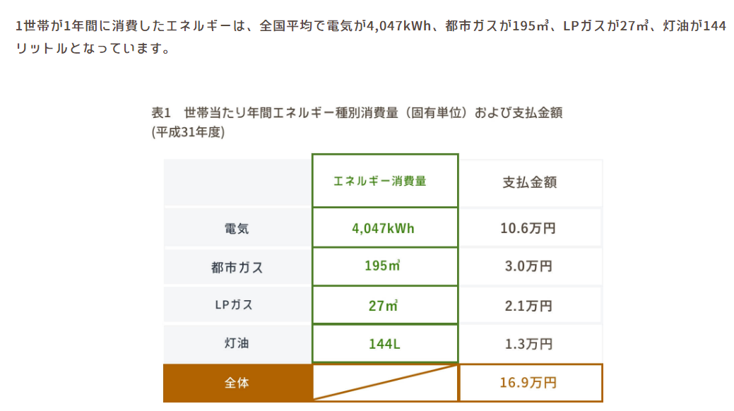 環境省のデータにより、1世帯が1年間に消費する平均電気使用量がありました。