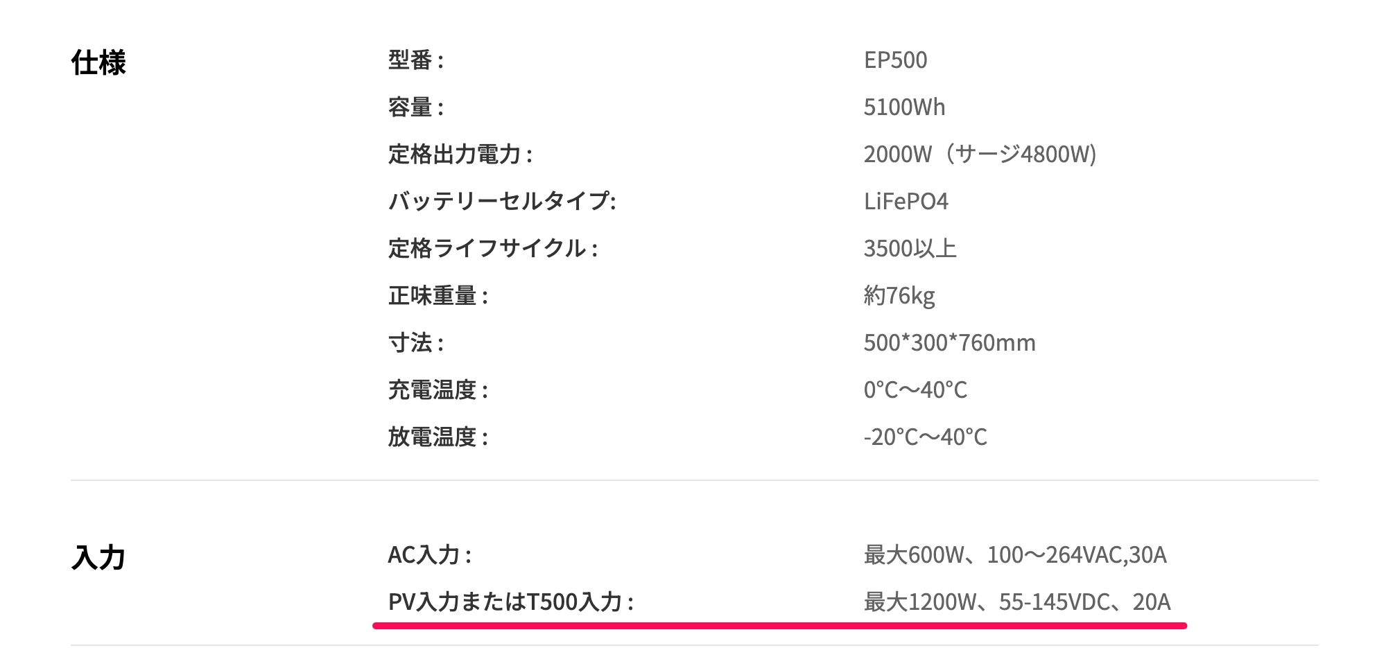 さらにこちらは、ソーラーパネルからの入力上限が高くなっています。